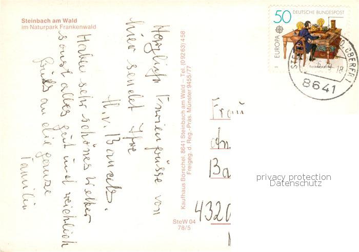 73836289 Buchbach Steinbach Wald Fliegeraufnahme Naturpark Frankenwald postalisch nicht gelaufen Erhaltung siehe scans [WerneD78] KatCode: 11110009476175