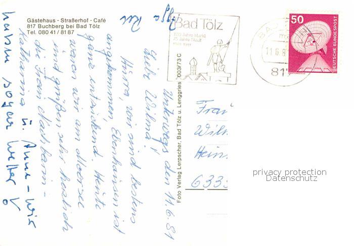 72897323 alte Postkarte Buchberg Wackersberg Strasserhof Terrasse postalisch gelaufen Erhaltung siehe scans [WerneD78] KatCode: 11110009173145