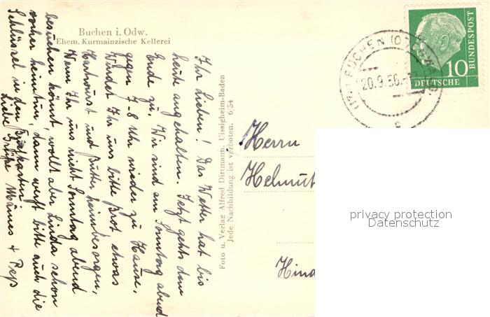 72979551 alte Postkarte Buchen Odenwald Ehemalige Kurmainzische Kellerei postalisch gelaufen Erhaltung siehe scans [FriedD77] KatCode: 11110008225014