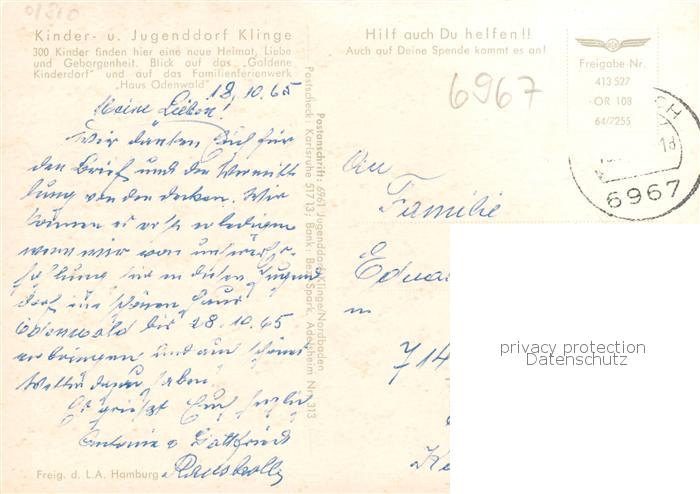 73868094 Buchen Odenwald Kinder und Jugenddorf Klinge Fliegeraufnahme postalisch gelaufen Erhaltung siehe scans [WerneD78] alte Postkarte Wern Katcode 11110008225014