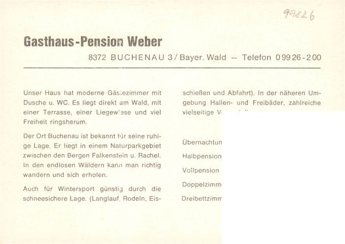 73902164 Buchenau Zwiesel Niederbayern Gasthaus Pension B Gasthaus Pension Weber postalisch nicht gelaufen Werbekarte (keine Postkarte) Erhaltung siehe scans [WerneD78] KatCode: 11110009276130
