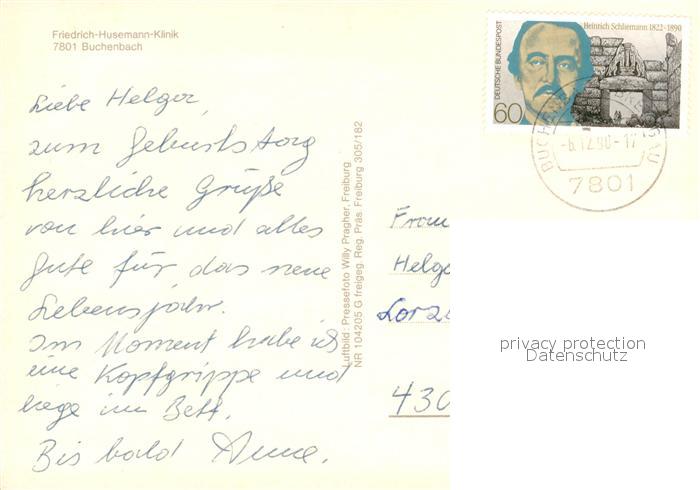 73600135 alte Postkarte Buchenbach Breisgau Friedrich Husemann Klinik Fliegeraufnahme postalisch gelaufen Erhaltung siehe scans [FriedD77] KatCode: 11110008315020