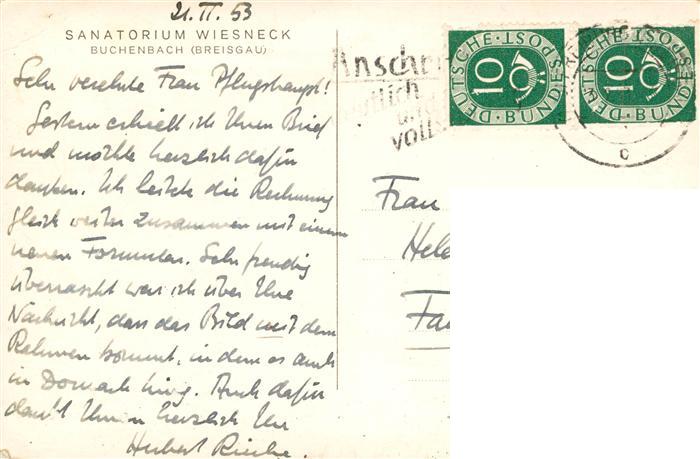 73900294 alte Postkarte Buchenbach Breisgau Sanatorium Wiesneck postalisch gelaufen Erhaltung siehe scans [FriedD77] KatCode: 11110008315020