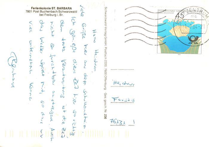 73931866 Buchenbach Freiburg Breisgau Schwarzwald Ferienkolonie St. Barbara postalisch gelaufen Erhaltung siehe scans [FriedD77] alte Postkarte Frie Katcode 11110008315020