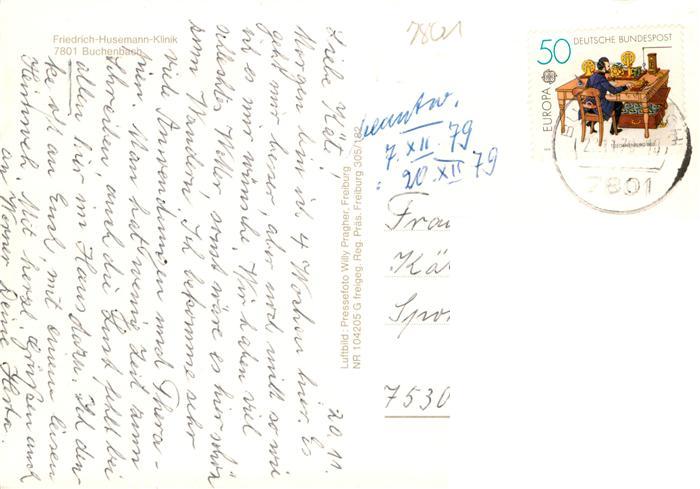 73932968 Buchenbach Freiburg Breisgau Schwarzwald Friedrich Husemann Klinik postalisch gelaufen Fliegeraufnahme Erhaltung siehe scans [WerneD78] Fliegeraufnahme alte Postkarte Wern Katcode 11110008315020