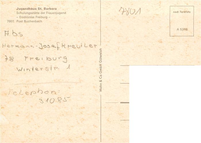 73932962 Buchenbach Freiburg Breisgau Schwarzwald Jugendhaus St Barbara postalisch nicht gelaufen Erhaltung siehe scans [WerneD78] Wern Katcode 11110008315020