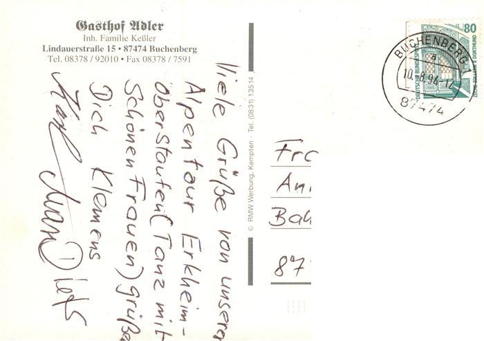 73941991 alte Postkarte Buchenberg Allgaeu Gasthof Adler Bar Gastraum postalisch gelaufen Erhaltung siehe scans [FriedD77] KatCode: 11110009780117