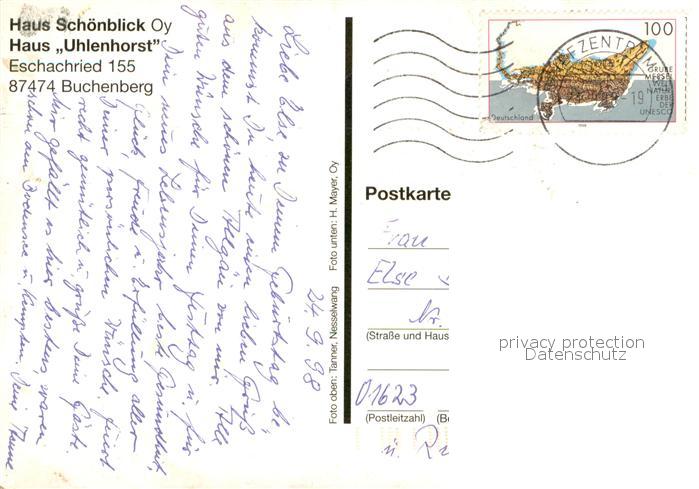 73654005 alte Postkarte Buchenberg Allgaeu Haus Schoenblick Oy haus Uhlenhorst postalisch gelaufen Erhaltung siehe scans [WerneD78] KatCode: 11110009780117