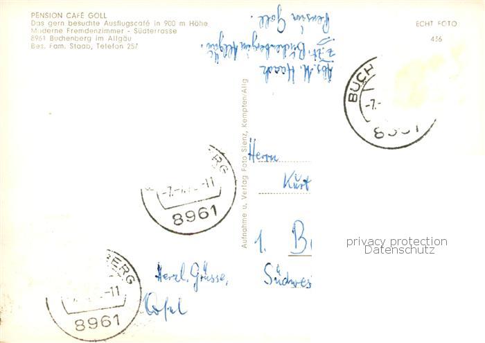 73832190 alte Postkarte Buchenberg Allgaeu Pension Cafe Goll postalisch gelaufen Erhaltung siehe scans [WerneD78] KatCode: 11110009780117