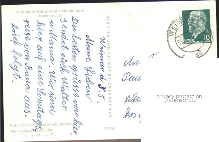 72146738 alte Postkarte Buchenwald Weimar Mahn- und Gedenkstaette postalisch gelaufen Erhaltung siehe scans KatCode: 11110016055000