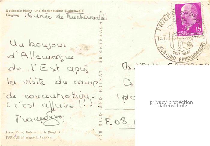 74036944 alte Postkarte Buchenwald Weimar Nationale Gedenkstaette Eingang postalisch gelaufen Erhaltung siehe scans [WerneD78] KatCode: 11110016055000