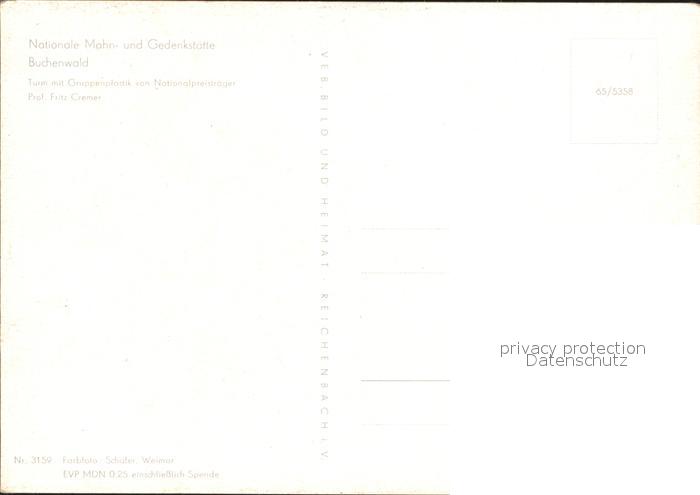 72369751 Buchenwald Weimar Nationale Mahn und Gedenkstaette Buchenwald Turm mit Gruppenplastik postalisch nicht gelaufen Erhaltung siehe scans KatCode: 11110016055000