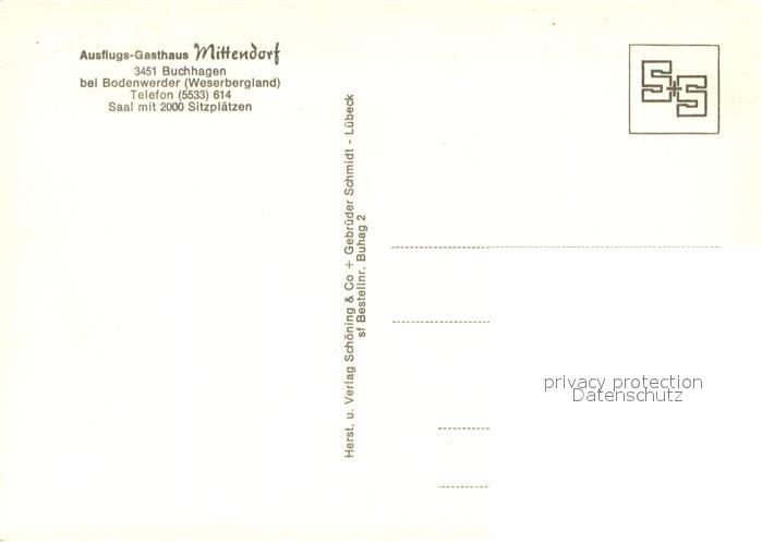73716167 Buchhagen Ausflugsgasthaus Mittendorf postalisch nicht gelaufen Erhaltung siehe scans [WerneD78] KatCode: 11110003255003