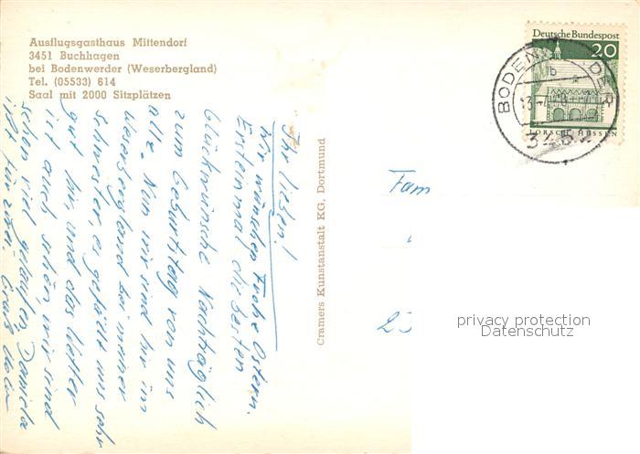73596239 alte Postkarte Buchhagen Ortsansicht mit Ausflugsgasthaus Mittendorf postalisch gelaufen Erhaltung siehe scans [FriedD77] KatCode: 11110003255003