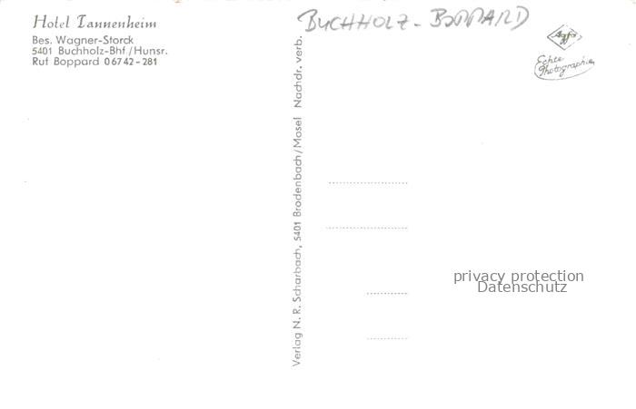 74104519 Buchholz Boppard Rhein Rheinland-Pfalz Hotel Tannenheim postalisch nicht gelaufen Erhaltung siehe scans [FriedD77] KatCode: 11110007140501
