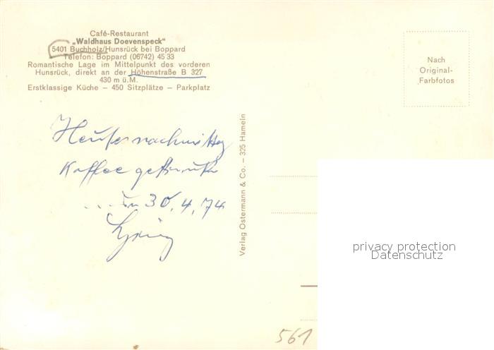 73643411 Buchholz Hunsrueck Cafe Restaurant Waldhaus Doevenspeck postalisch nicht gelaufen Erhaltung siehe scans [WerneD78] KatCode: 11110007140501