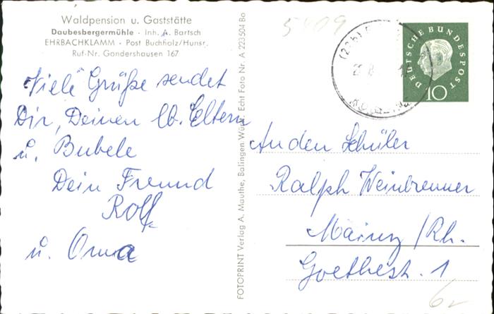 40924839 Buchholz Hunsrueck Waldpension-Gaststätte Daubesbergermühle Ehrbachklamm x KatCode 11110007140501