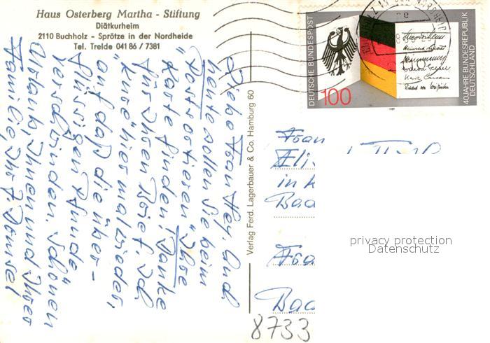 73686142 alte Postkarte Buchholz Niedersachsen Haus Osterberg Martha Stiftung Sproetze in der Nordheide postalisch gelaufen Erhaltung siehe scans [WerneD78] KatCode: 11110003353005