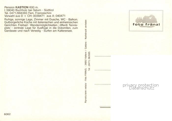 Buchholz Salurn Pension Kastion Panorama postalisch nicht gelaufen Erhaltung siehe scans [FriedD77]