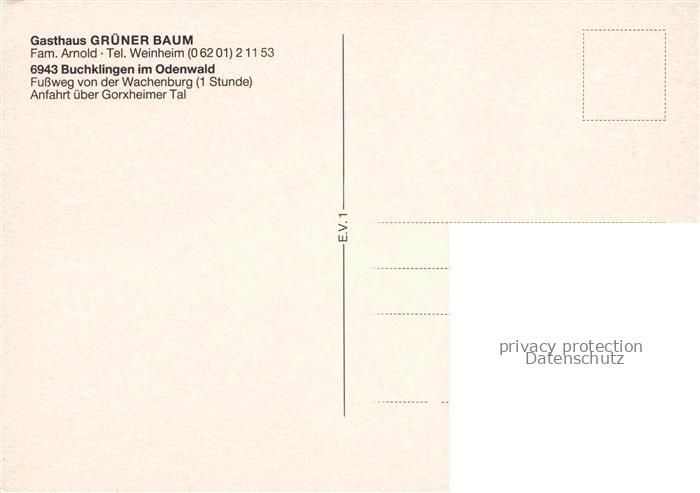74048177 Buchklingen Odenwald Gasthaus Gruener Baum Restaurant Ortsansicht postalisch nicht gelaufen Erhaltung siehe scans [FriedD77] KatCode: 11110006431004