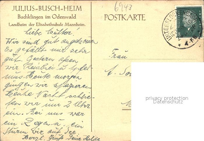 31731447 alte Postkarte Buchklingen Odenwald Julius Busch Heim Kuenstlerkarte postalisch gelaufen Erhaltung siehe scans KatCode: 11110006431004