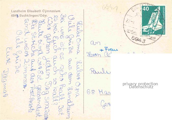 74048074 alte Postkarte Buchklingen Odenwald Landheim Elisabeth Gymnasium postalisch gelaufen Erhaltung siehe scans [FriedD77] KatCode: 11110006431004