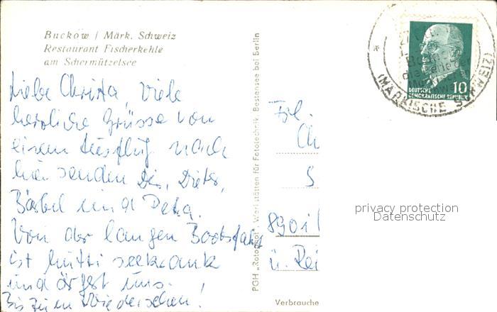72506984 alte Postkarte Buckow Berlin Restaurant Fischerkehle am Schermuetzelsee postalisch gelaufen Erhaltung siehe scans KatCode: 11110011000000