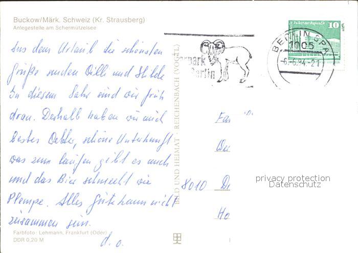 72372928 alte Postkarte Buckow Maerkische Schweiz Anlegestelle am Scharmuetzelsee postalisch gelaufen Erhaltung siehe scans KatCode: 11110012064084