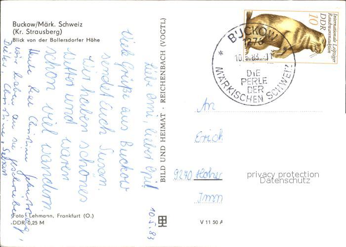 72427745 alte Postkarte Buckow Maerkische Schweiz Blick von Bollersdorfer Hoehe postalisch gelaufen Erhaltung siehe scans KatCode: 11110012064084