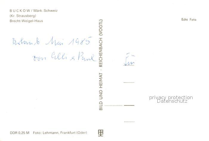 72986520 Buckow Maerkische Schweiz Brecht Weigel Haus postalisch nicht gelaufen Erhaltung siehe scans [WerneD78] KatCode: 11110012064084