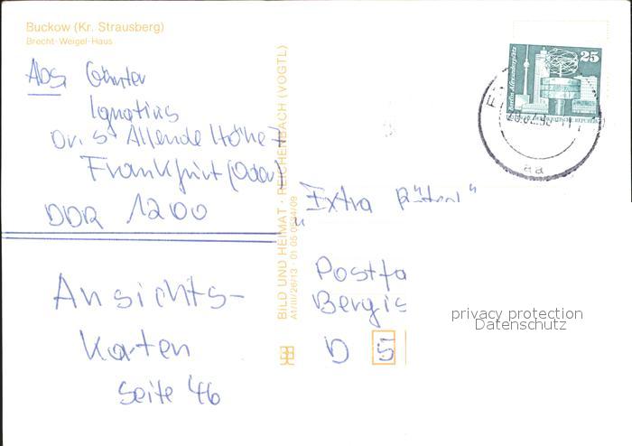 71935608 alte Postkarte Buckow Maerkische Schweiz Brecht Weigel Haus postalisch gelaufen Erhaltung siehe scans KatCode: 11110012064084