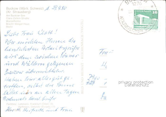 72136910 alte Postkarte Buckow Maerkische Schweiz Brecht-Weigel-Haus Clara-Zetkin-Strasse Wurzelfichte postalisch gelaufen Erhaltung siehe scans KatCode: 11110012064084