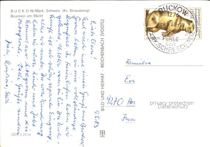 72427743 alte Postkarte Buckow Maerkische Schweiz Brunnen am Markt postalisch gelaufen Erhaltung siehe scans KatCode: 11110012064084