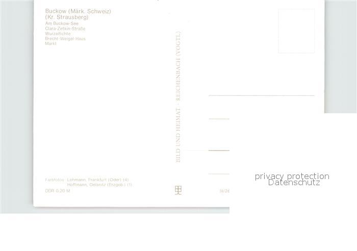 72581113 Buckow Maerkische Schweiz Buckow See Clara Zetkin Str Wurzelfichte Brecht Weigel Haus Markt postalisch nicht gelaufen Erhaltung siehe scans [FriedD77] KatCode: 11110012064084