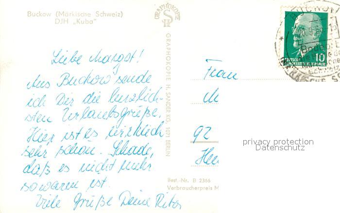 73032026 alte Postkarte Buckow Maerkische Schweiz DJH Kuba postalisch gelaufen Erhaltung siehe scans [KathaD81] KatCode: 11110012064084