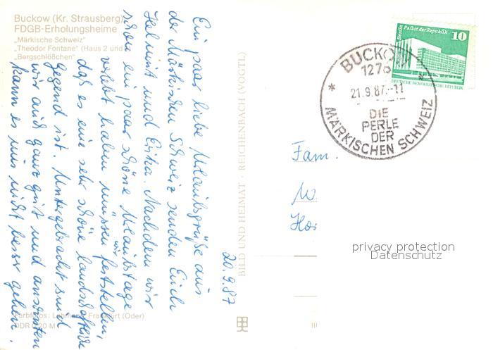 73030128 alte Postkarte Buckow Maerkische Schweiz Erholungsheime Maerkische Schweiz Theodor Fontane Bergschloesschen postalisch gelaufen Erhaltung siehe scans [PaolaD17] KatCode: 11110012064084