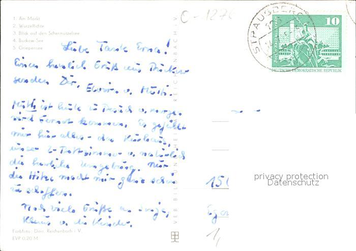 72257834 alte Postkarte Buckow Maerkische Schweiz Markt Wurzelfichte Schermuetzelsee Bockowsee Griepensee postalisch gelaufen Erhaltung siehe scans KatCode: 11110012064084