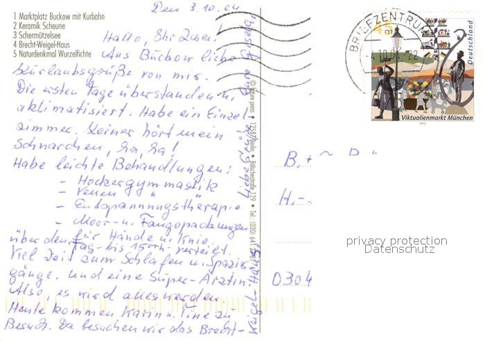 73571985 alte Postkarte Buckow Maerkische Schweiz Marktplatz Kurbahn Keramik Scheune Schermuetzelsee Brecht Weigel Haus Naturdenkmal Wurzelfichte postalisch gelaufen Erhaltung siehe scans [WerneD78] KatCode: 11110012064084