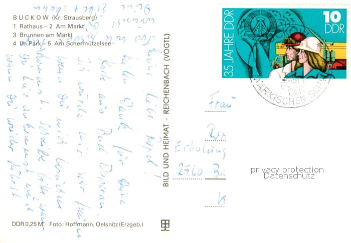 73033609 alte Postkarte Buckow Maerkische Schweiz Rathaus Markt Brunnen Park Schermuetzelsee postalisch gelaufen Erhaltung siehe scans [KathaD81] KatCode: 11110012064084