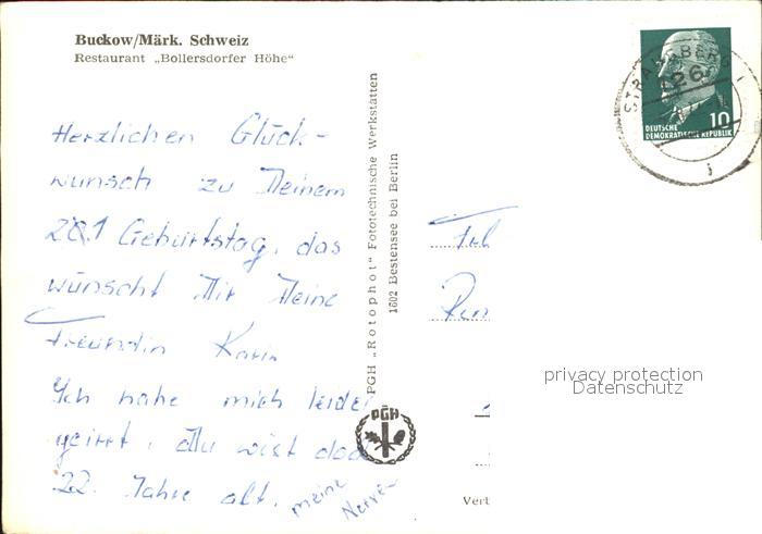 72407934 alte Postkarte Buckow Maerkische Schweiz Restaurant Bollersdorfer Hoehe postalisch gelaufen Erhaltung siehe scans KatCode: 11110012064084