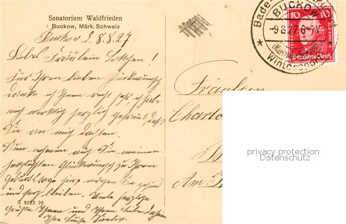 73818951 alte Postkarte Buckow Maerkische Schweiz Sanatorium Waldfrieden postalisch gelaufen Erhaltung siehe scans [WerneD78] KatCode: 11110012064084