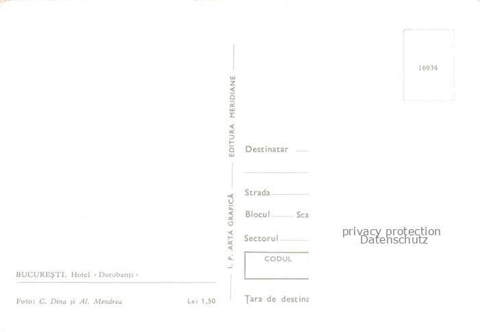 74109626 Bucuresti Bukarest Bucaresti RO Hotel Dorobanti Gastraeume Foyer Treppenaufgang postalisch nicht gelaufen Erhaltung siehe scans [WerneD78] KatCode: 11430