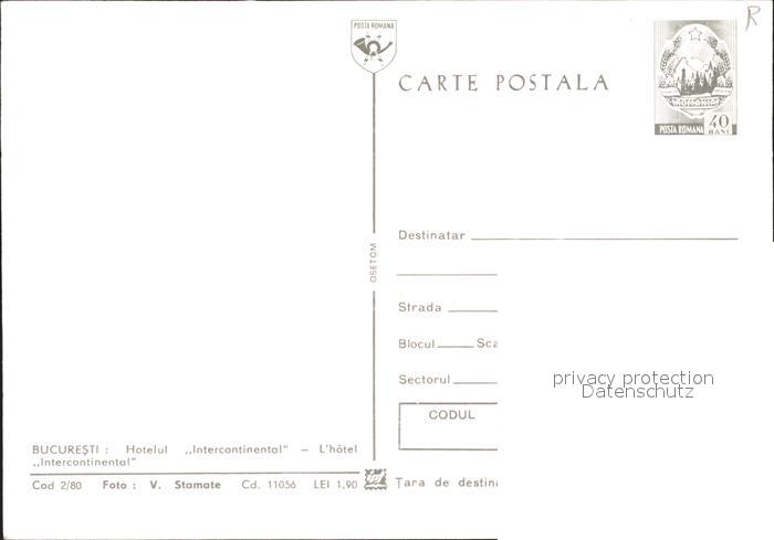 Bucuresti Bukarest Bucaresti RO Hotel Intercontinental postalisch nicht gelaufen Ganzsache (eingedruckte Briefmarke) Erhaltung siehe scans
