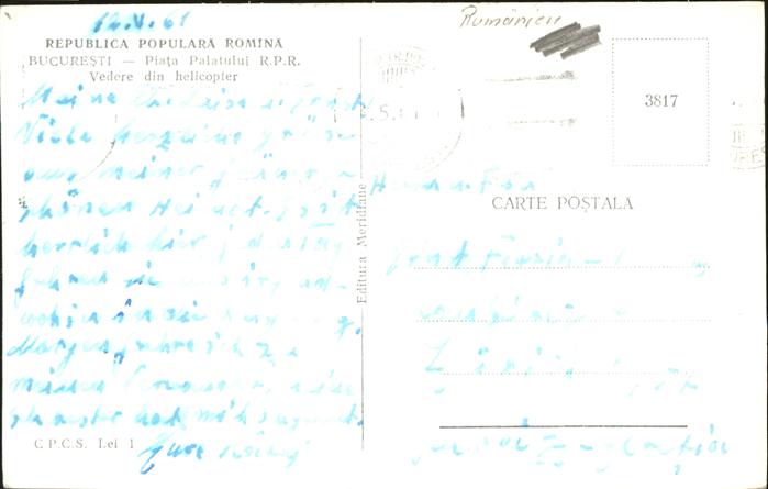 11445433 Bucuresti Bukarest Bucaresti RO Piata Palatului Platz des Palais Fliegeraufnahme postalisch gelaufen Erhaltung siehe scans Alte Ansichtskarte Postkarte old postcard hz_F Katcode 11430