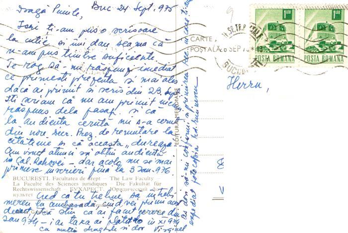 old postcard Bucuresti Bukarest Bucaresti RO Universitatea The Law Faculty postalisch gelaufen Erhaltung siehe scans [WerneD78]