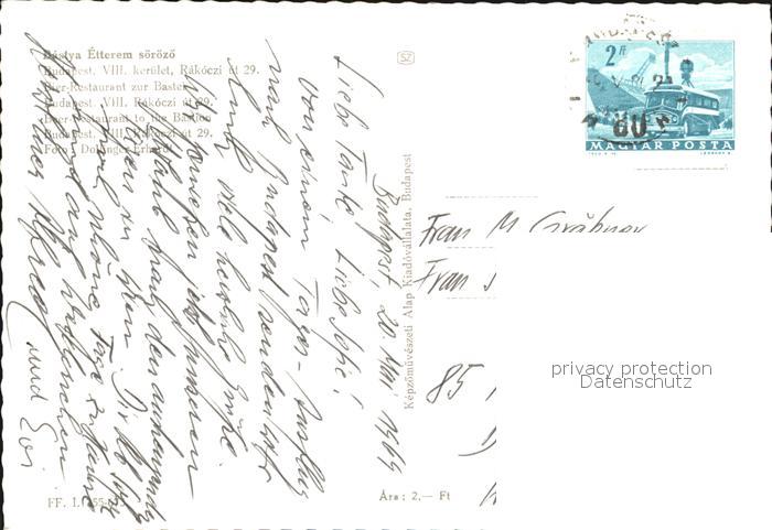 old postcard Budapest Bier Restaurant zur Bastei Gast und Speiseraum postalisch gelaufen Erhaltung siehe scans