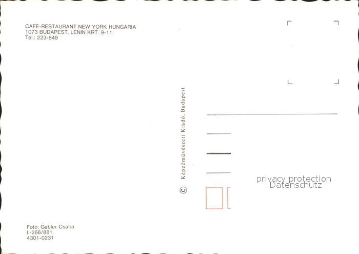 Budapest Cafe Restaurant New York postalisch nicht gelaufen Erhaltung siehe scans