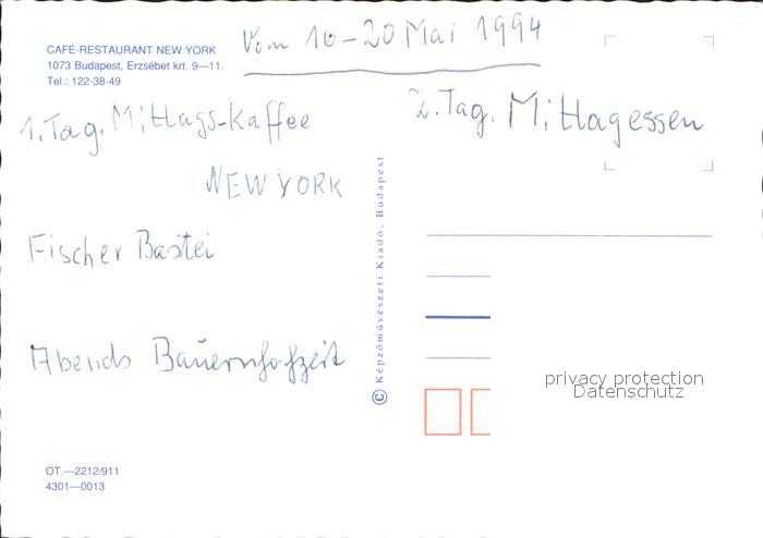 Budapest Cafe Restaurant New York postalisch nicht gelaufen Erhaltung siehe scans
