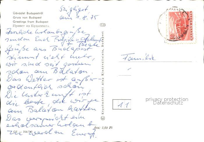 old postcard Budapest Donaubruecke Nachtaufnahme Burgpalast Kirche Grand Hotel postalisch gelaufen Erhaltung siehe scans