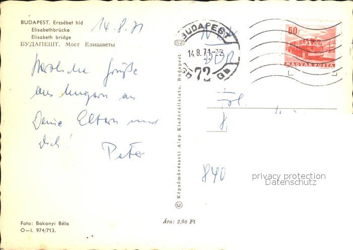 old postcard Budapest Erzsebet Hid postalisch gelaufen Erhaltung siehe scans